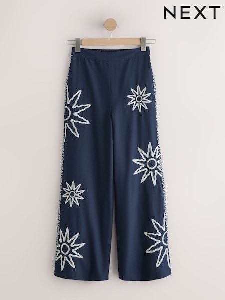 Pink/White Linen Blend Wide Leg Trousers 2 Pack