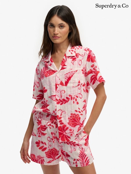 Superdry Ecru/Blue Beach Printed Short Sleeves Shirt