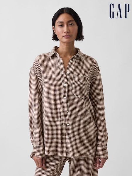Lipsy Chocolate Brown Touch Of Linen Long Sleeve Shirt