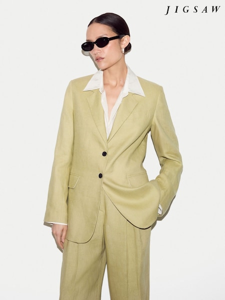 Jigsaw Green Linen Peak Lapel Blazer