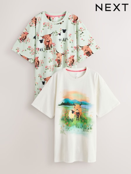 Sage Green Hamish The Highland Cow Nighties 2 Pack