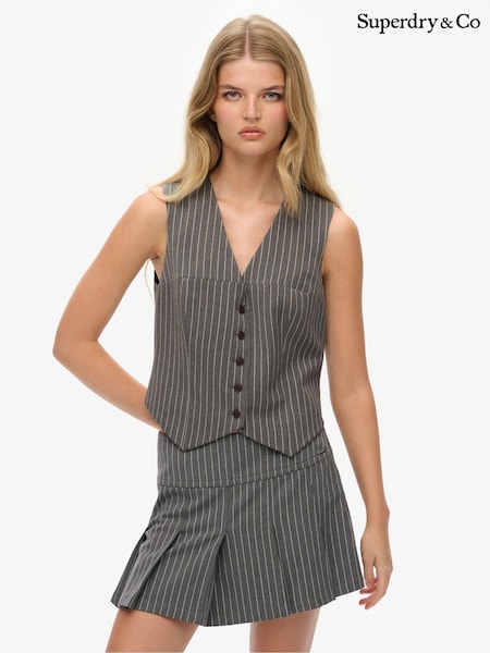 River Island Grey Sleeveless Pinstripe Cropped Waistcoat