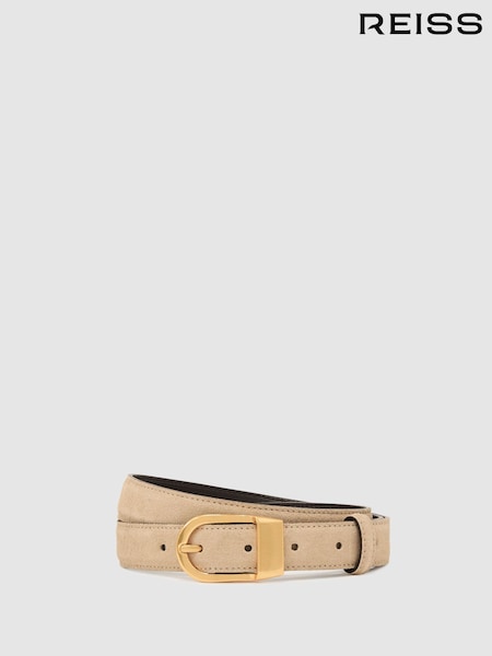Reiss Stone Hazel Leather Curved-Buckle Belt