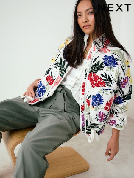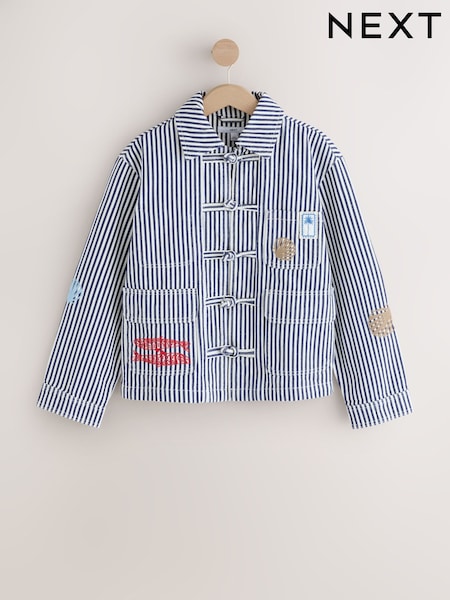 Blue and White Stripe Cotton Stripe Embroidered Jacket