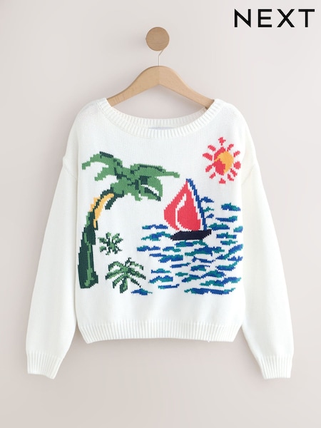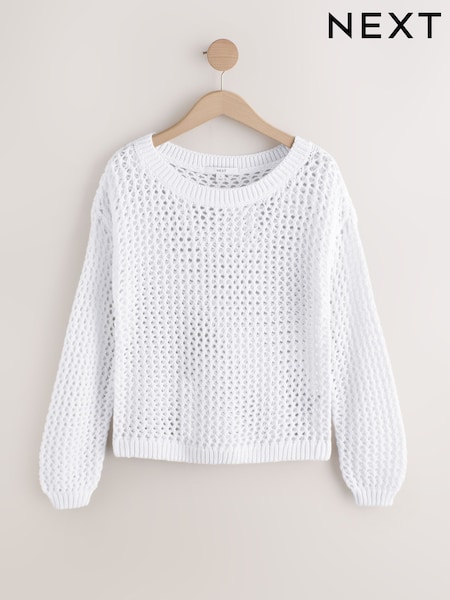 White Mesh Crochet 100% Cotton Off Shoulder Jumper