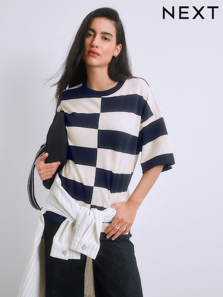 Navy/White Stripe Oversized Relaxed Fit Boxy Heavyweight Crew Neck T-Shirt