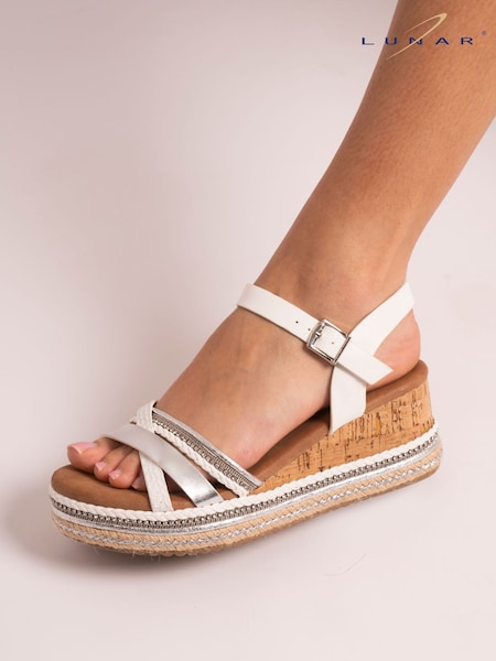 Linzi White Venice Embellished Flatform Sandals