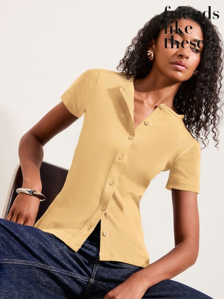 Friends Like These Buttermilk Yellow Short Sleve Button Through Top