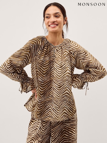 Monsoon Brown Pippa Animal Print Blouse