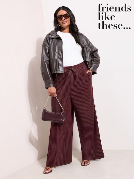 Friends Like These Burgundy Red Curve Pinstripe Elasticated Waist Wide Leg Trousers
