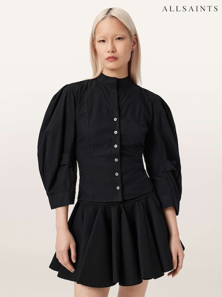 AllSaints Black Maud Lace-Up Shirt