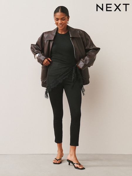 Black Cropped Jersey Denim Leggings