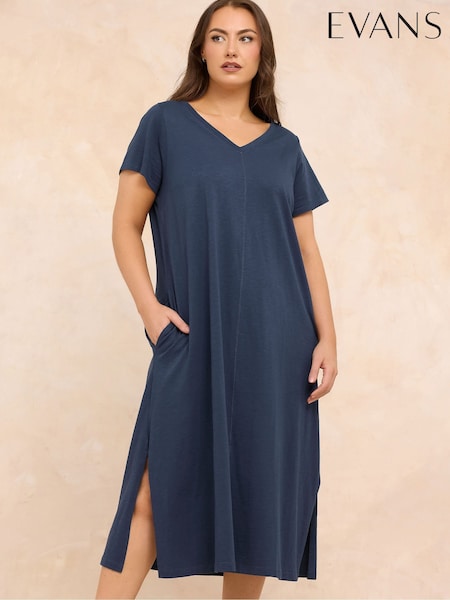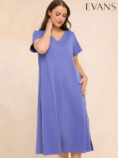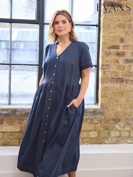 Evans Blue Short Sleeve Button Thru Denim Maxi Dress