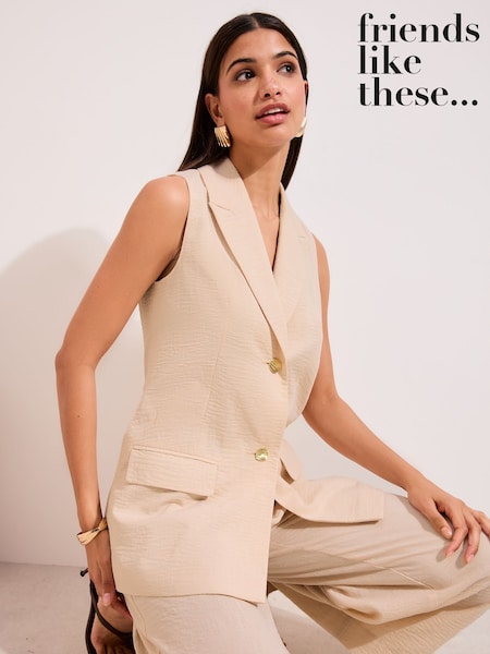 Friends Like These Neutral Beige Linen Look Sleeveless Blazer