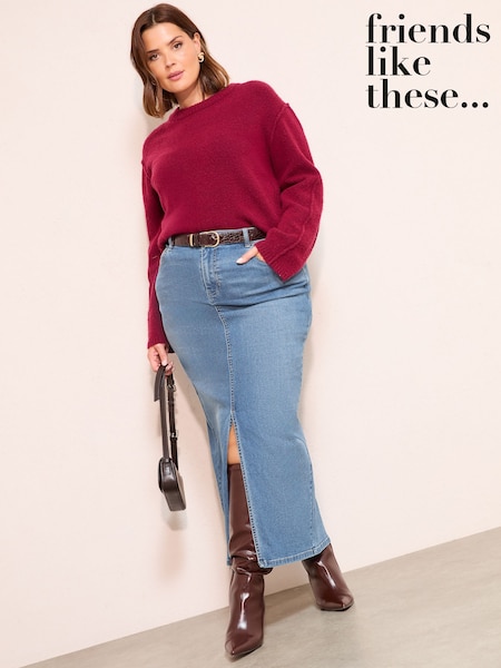 Friends Like These Mid Blue Curve Split Front Denim Midi Skirt