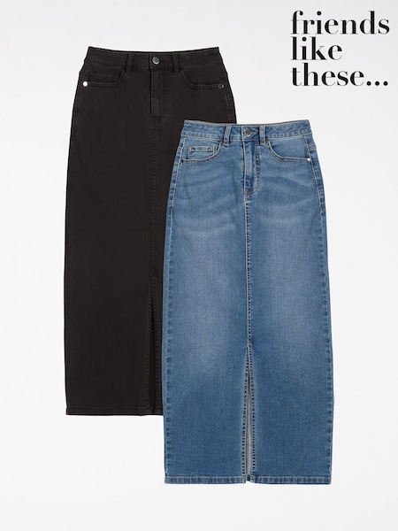 Friends Like These Black Mid Blue Split Front Denim Midi Skirts 2 Pack