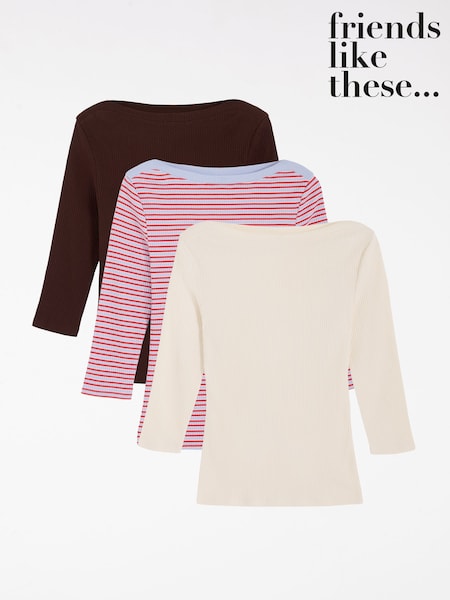 Friends Like These Multi 3/4 Sleeve Ribbed Boat Neck T-Shirts 3 Pack