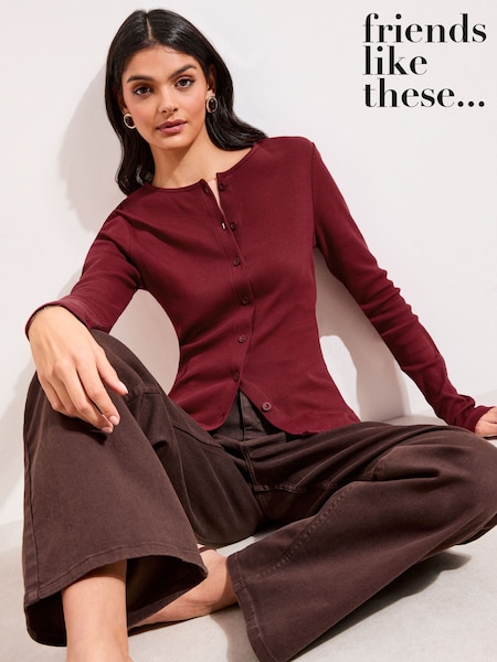 Friends Like These Burgundy Long Sleeve Rib Button Through Top