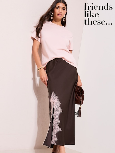 Friends Like These Purple Lace Trim Split Satin Maxi Skirt