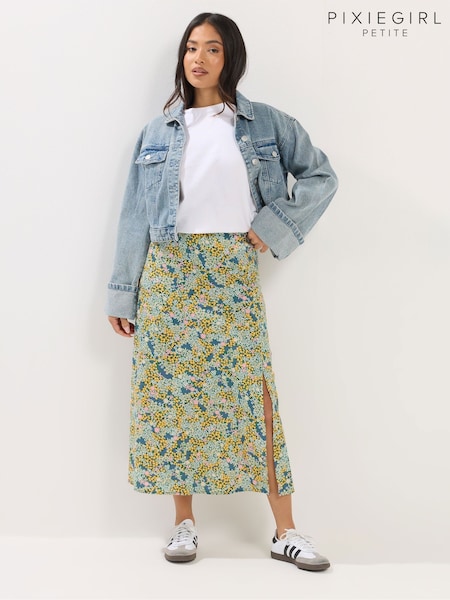 PixieGirl Petite Green Ditsy Midaxi Skirt