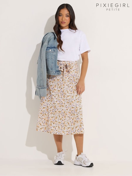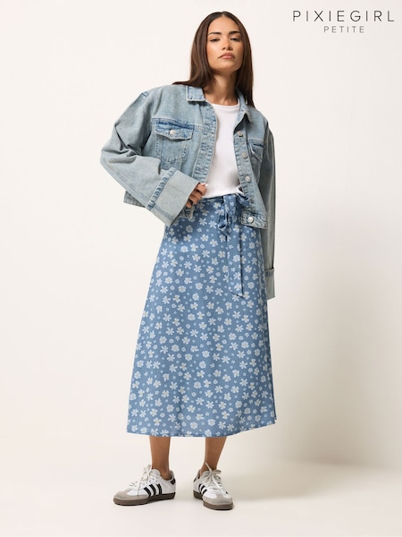 PixieGirl Petite Blue Daisy A Line Midaxi Skirt
