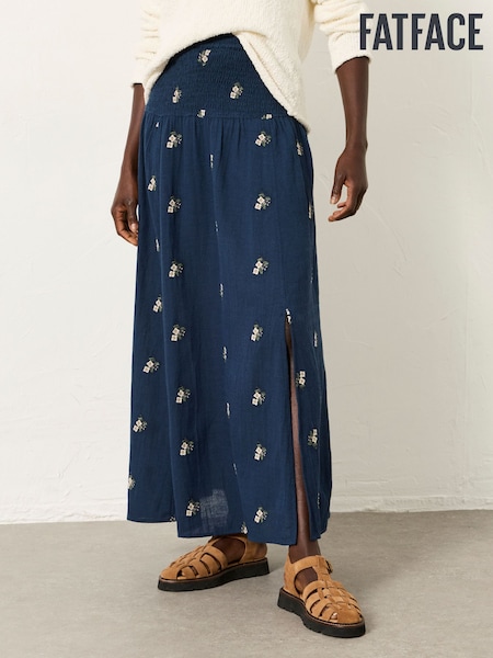 FatFace Black Harper Embroidered Midi Skirt