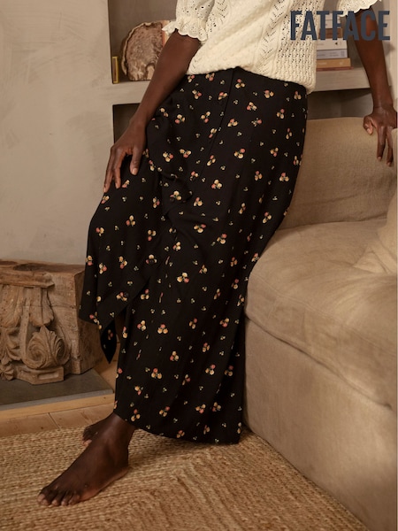 FatFace Black Floral Midi Skirt