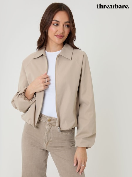 Threadbare Natural Double Breasted Cropped Trench Jacket