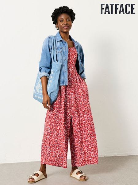 FatFace Red Surf Ditsy Petite Ruby Jumpsuit