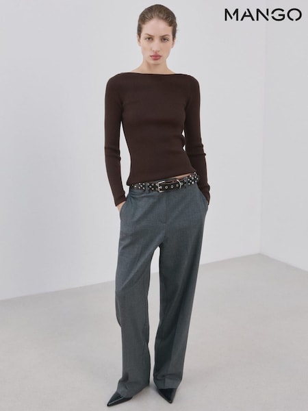 Mango Brown 2-in-1 Satin and Lace Detail Jumper