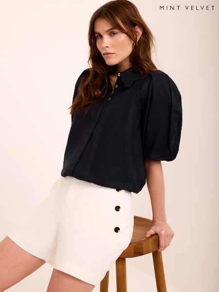Mint Velvet Navy Blue Puff Sleeve Shirt