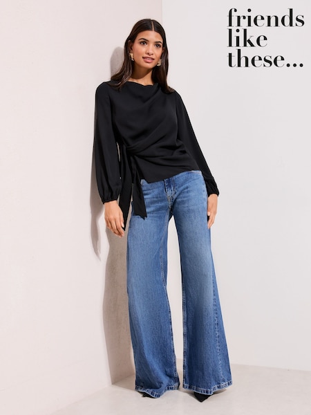 Friends Like These Black Long Sleeve Tie Side Cowl Blouse