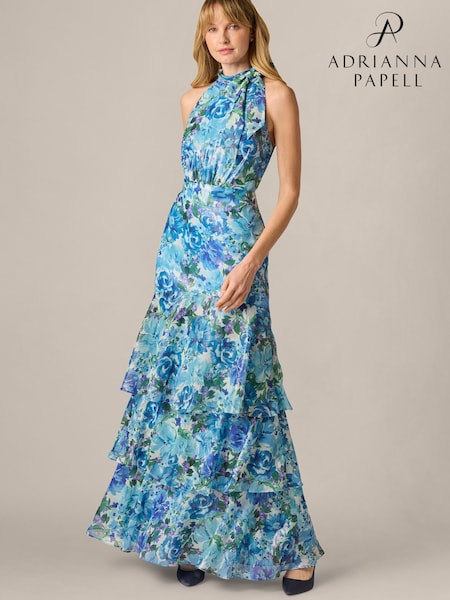 Adrianna Papell Blue Glazed Chiffon Gown