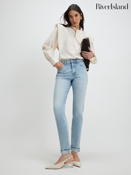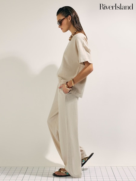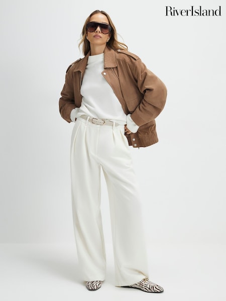 River Island Cream High Waisted Belted Wide Leg Trousers