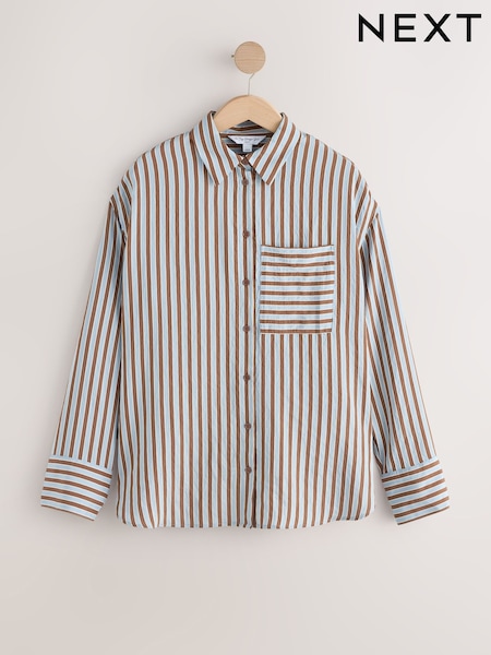 Blue/Brown Jacquard Stripe Oversized Long Sleeve Shirt