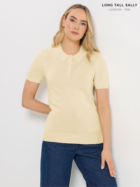 Long Tall Sally Red Crochet Stripe Polo Top Jumper