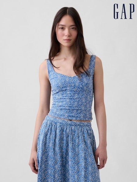 Gap Blue Eyelet Crop Bustier Top