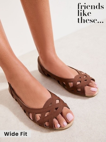 Friends Like These Tan Brown Wide Fit Faux Leather Flat Cutout Peeptoe Ballerina Shoes