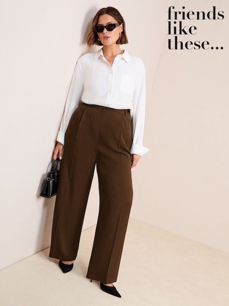 Friends Like These Brown Curve Premium Elastic Back Tailored Wide Leg Trousers