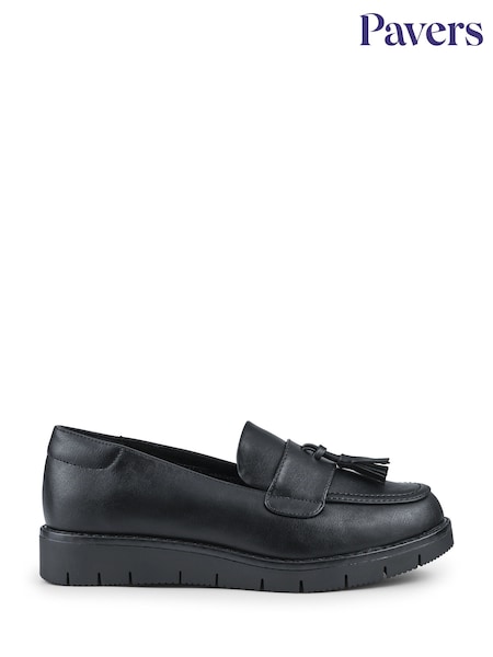 Pavers Black Wide Fit Tasselled Chunky Moccasins Shoes