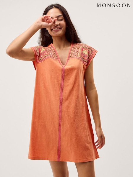 Monsoon Orange Juliet Embroidered Mini Kaftan