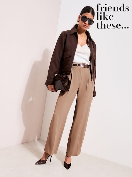 Friends Like These Neutral Premium Elastic Back Tailored Wide Leg Trousers