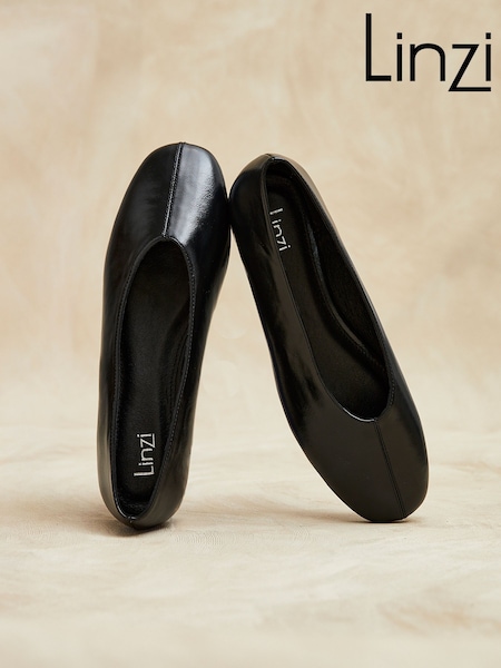 Linzi Black Structure Square Toe Ballet Flats With Top Stitching