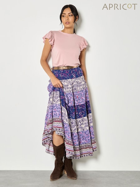 Apricot Purple Patchwork Print Tiered Maxi Skirt
