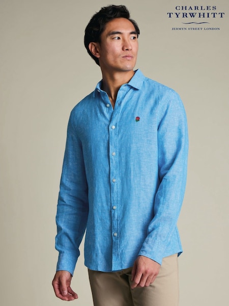 Charles Tyrwhitt Blue Stripe RFU Button-Down Washed Oxford Shirt
