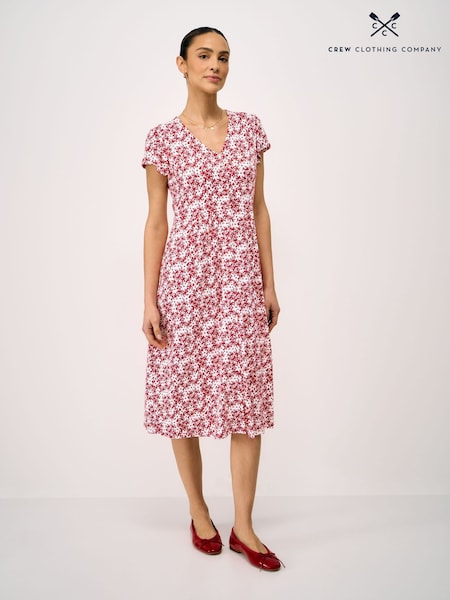 Crew Clothing Red Alyssia Button Through Meadow Floral Jersey Dress