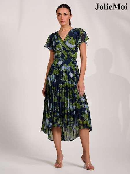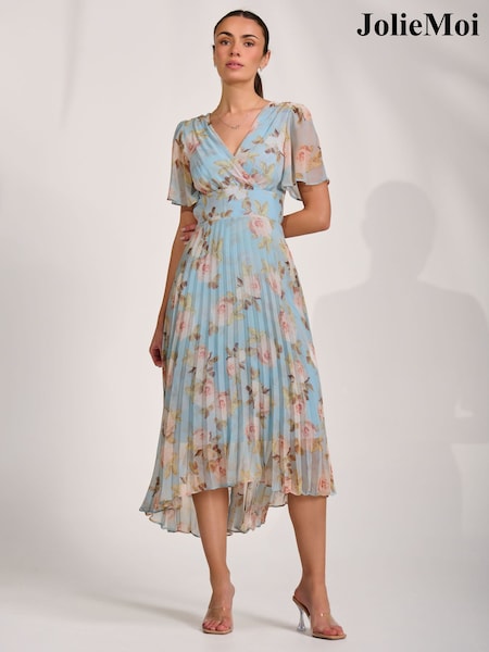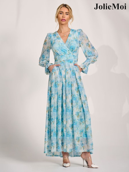 Jolie Moi Blue Chiffon Pleated Maxi Dress