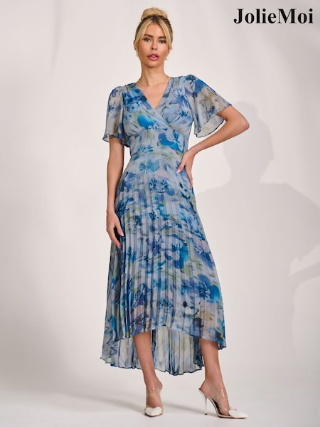 Jolie Moi Blue Chiffon Pleated Maxi Dress