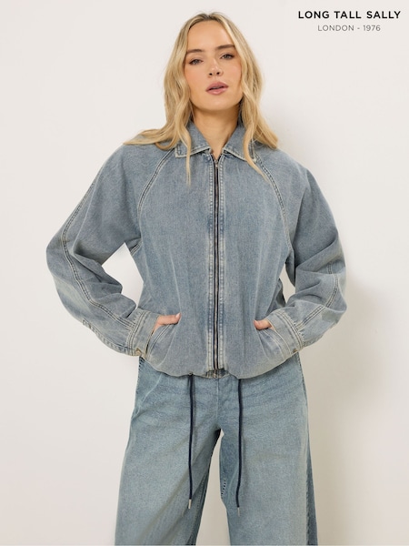 Long Tall Sally Blue Denim Collar Bomber Jacket