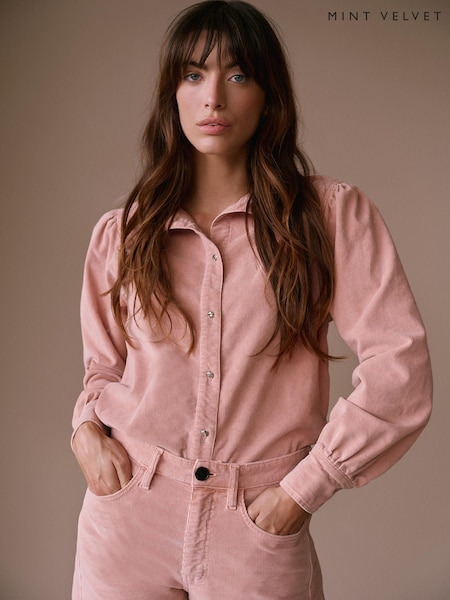 Mint Velvet Pink Corduroy Puff Sleeve Shirt